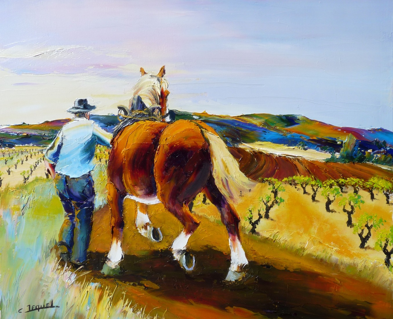 Peindre les travaux de la terre, les cueillettes, les vendanges, les moissons, et les scènes champêtres c'est peindre l'être humain en harmonie avec la nature.