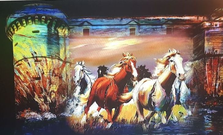 Le très beau poème "Chevauchées" est inspiré du tableau de Christian Jequel "Horde de chevaux". Il a été composé par sa propriétaire et l'idée lui est venue en le contemplant tous les jours.